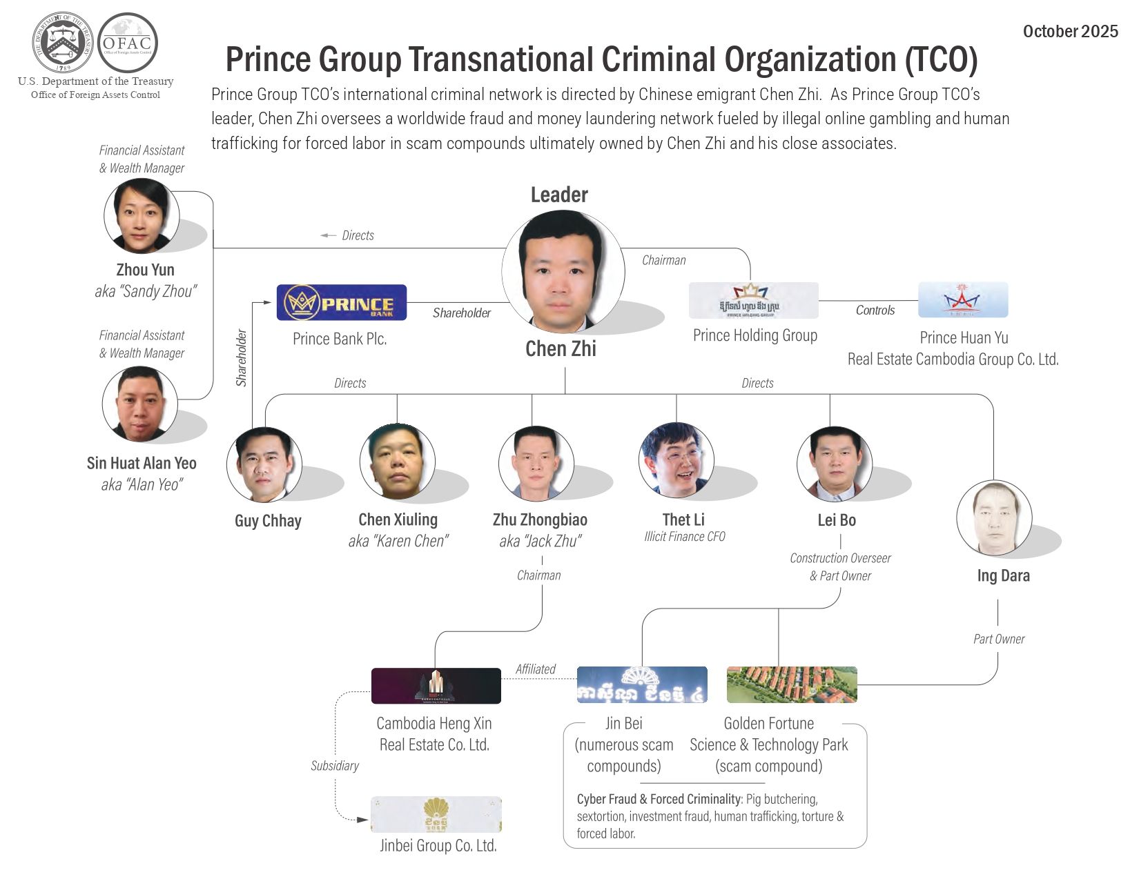 The Ofac, the US Treasury statement points out, has imposed sanctions on 146 targets within the Prince Group – described as a transnational criminal organization led by 38-year-old Chinese émigré Chen Zhi, who has acquired Cambodian citizenship.